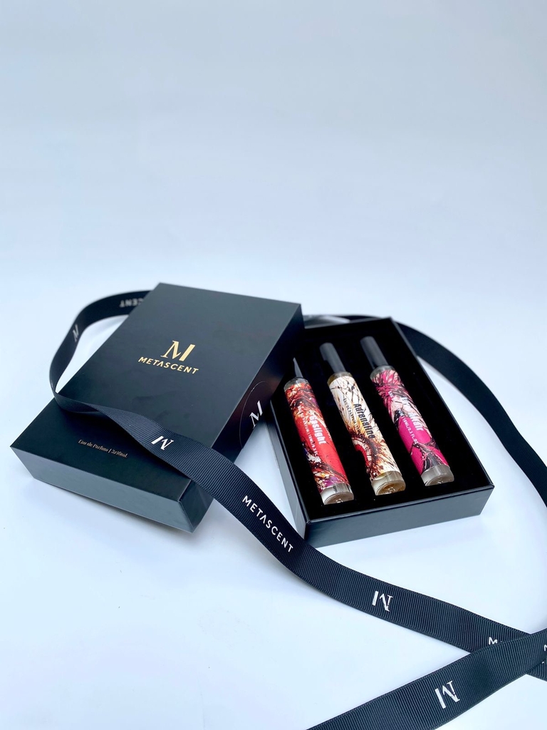 Enigma Mini Set bao gồm 3 mùi hương thuộc bộ sưu tập Enigma: Love Affair, Adrenaline và Gaslight.
