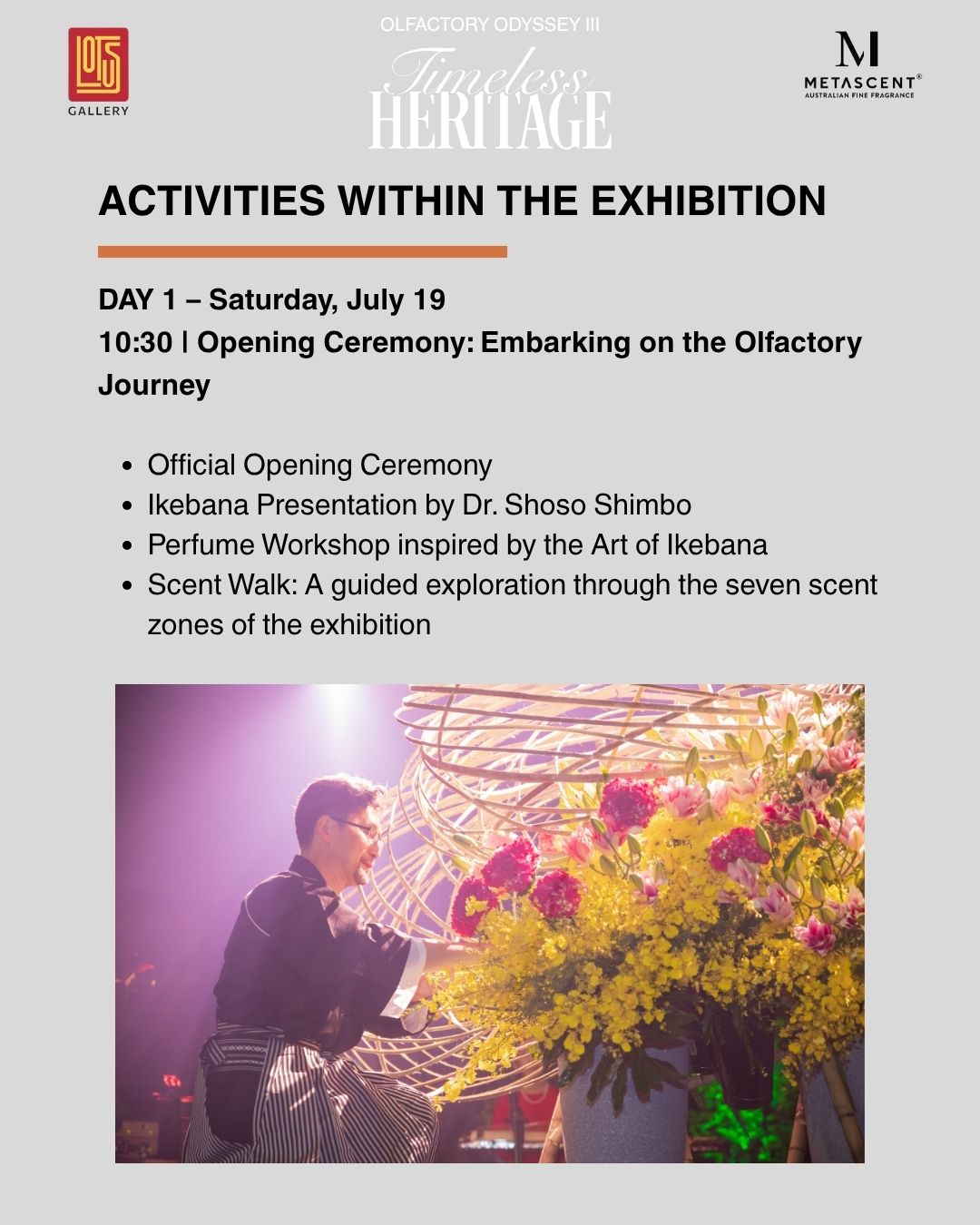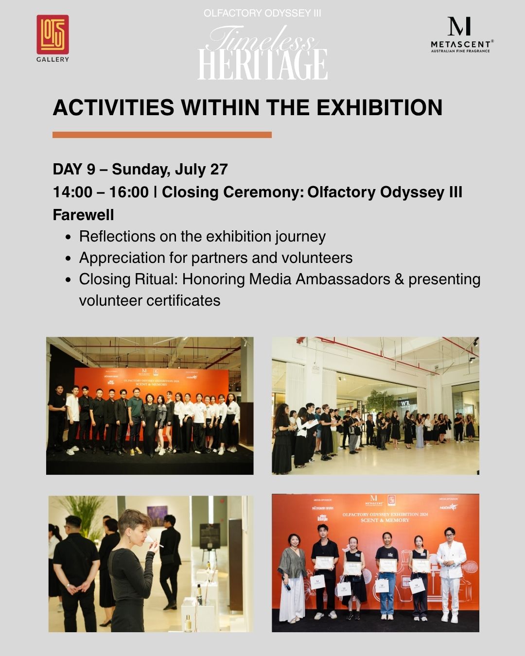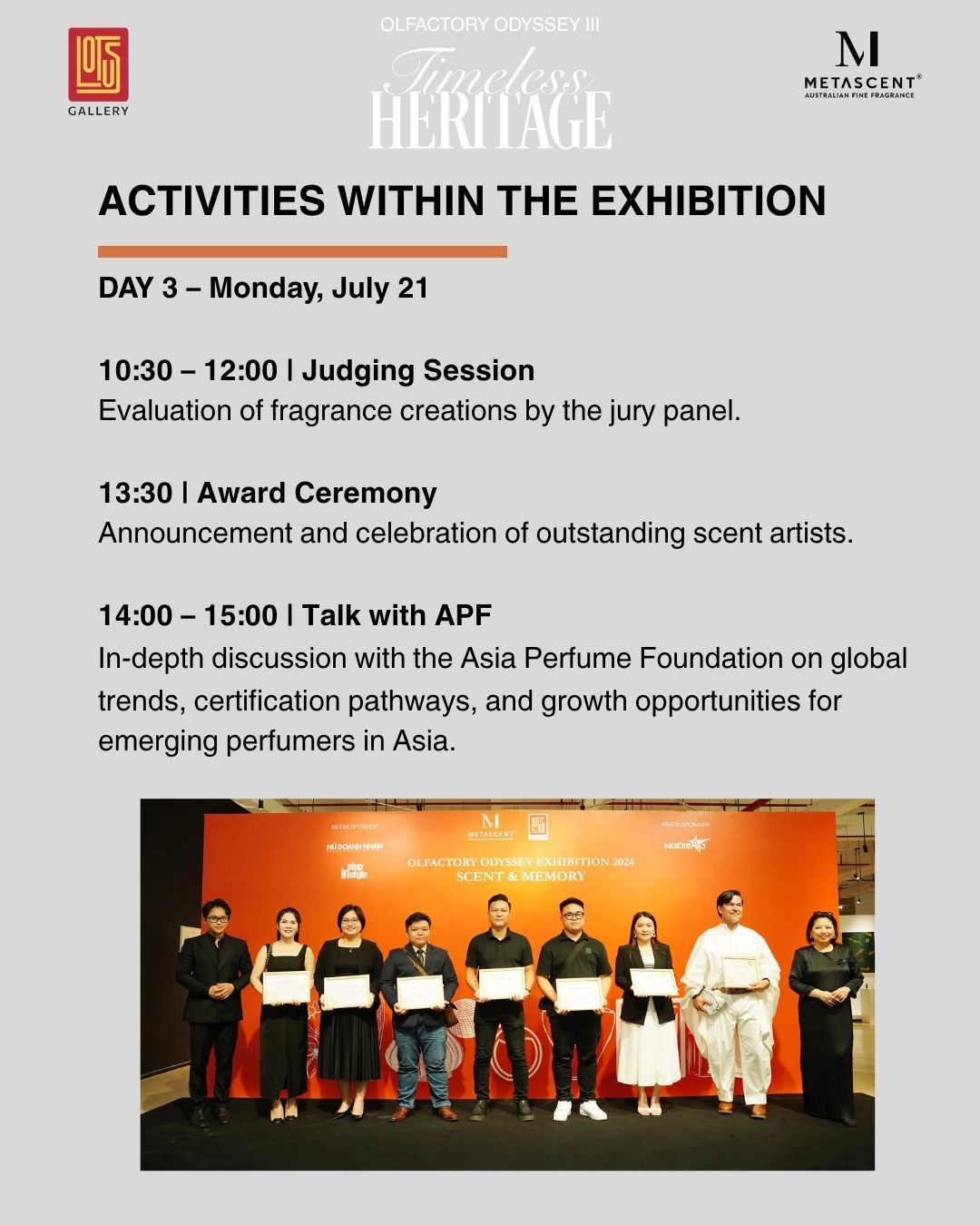 Lịch trình các hoạt động tại triển lãm nghệ thuật mùi hương Olfactory Odyssey III: Timeless Heritage