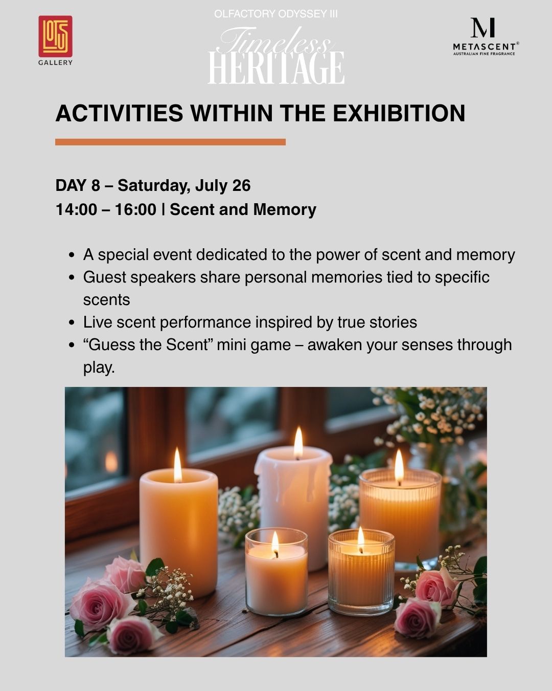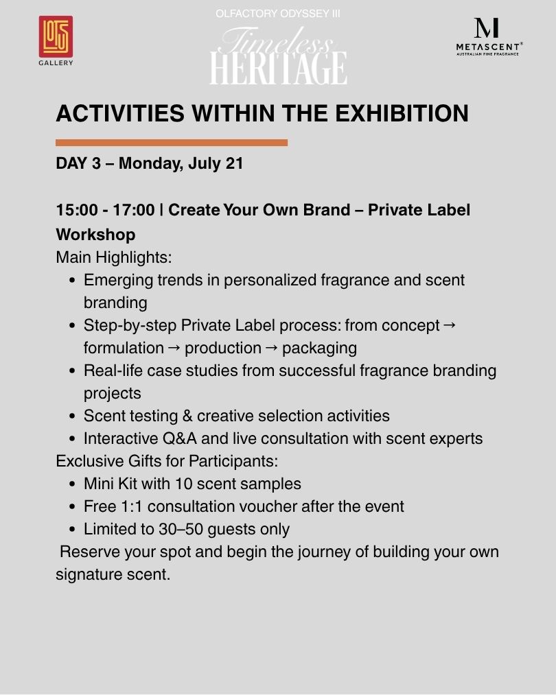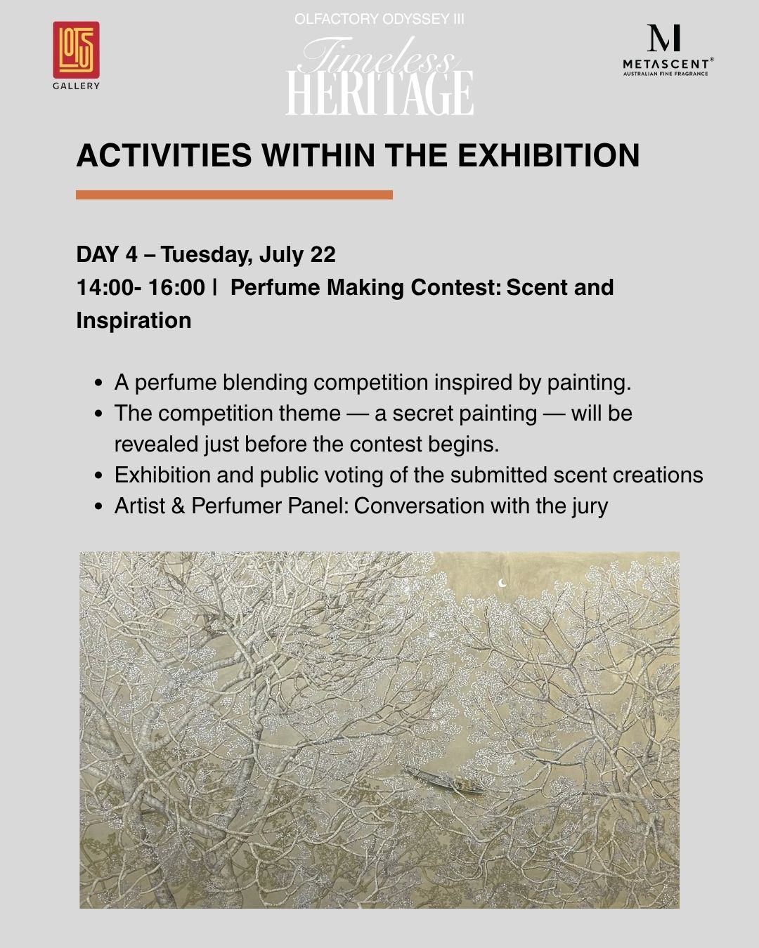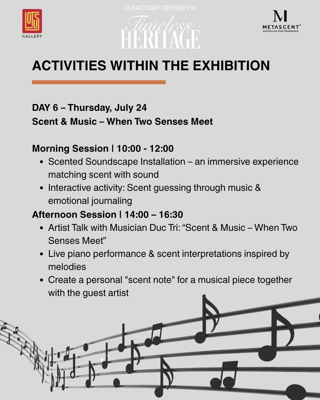 Lịch trình các hoạt động tại triển lãm nghệ thuật mùi hương Olfactory Odyssey III: Timeless Heritage