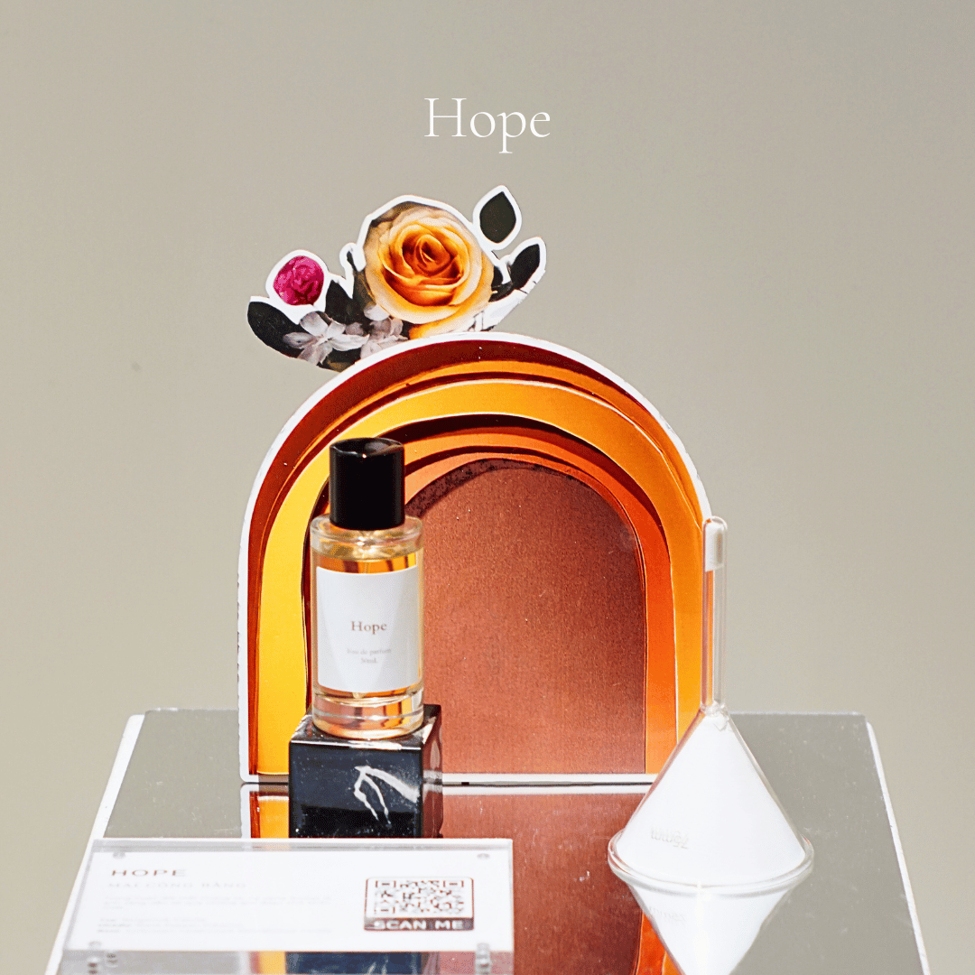 Trong cuộc đời mỗi chúng ta, Hy Vọng (Hope) là ánh sáng dẫn lối qua những giai đoạn khó khăn nhất. Từ câu chuyện cá nhân và câu chuyện với tấm gương sáng ngời của Nick Vujicic - người sinh ra không tay không chân nhưng đã vượt qua tất cả để trở thành nguồn cảm hứng toàn cầu. Vì vậy mà tôi muốn truyền cảm hứng qua mùi hương đặc biệt mang tên Hope. Mở đầu: Với sự tươi mát, nhẹ nhàng của cam bergamot, Hope khởi đầu như một buổi sáng trong lành, tươi sáng. Đây là khi chúng ta cảm nhận mọi thứ thật êm đềm, tươi đẹp, như những giấc mơ và hy vọng đầu đời của Nick. Tầng hương giữa: Cuộc sống không phải lúc nào cũng êm ả. Tầng hương giữa với tiêu đen, thuốc lá và trầm hương thể hiện những giai đoạn đen tối nhất, những lúc Nick cảm thấy vô vọng và mất phương hướng. Nhưng chính hy vọng đã giúp anh tìm thấy sức mạnh để vượt qua. Tầng hương cuối: Luôn có tia sáng cho những ai không ngừng hy vọng. Với long diên hương, gỗ đàn hương, gỗ tuyết tùng, rêu sồi và chút ngọt ngào của vani, Hope mang lại niềm tin vào một tương lai tốt đẹp, như chính hành trình kỳ diệu của Nick. Hope - Keep Going Forward, không chỉ là mùi hương mà là lời nhắc nhở về sức mạnh của hy vọng và sự kiên trì trong cuộc sống.
